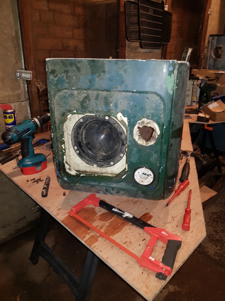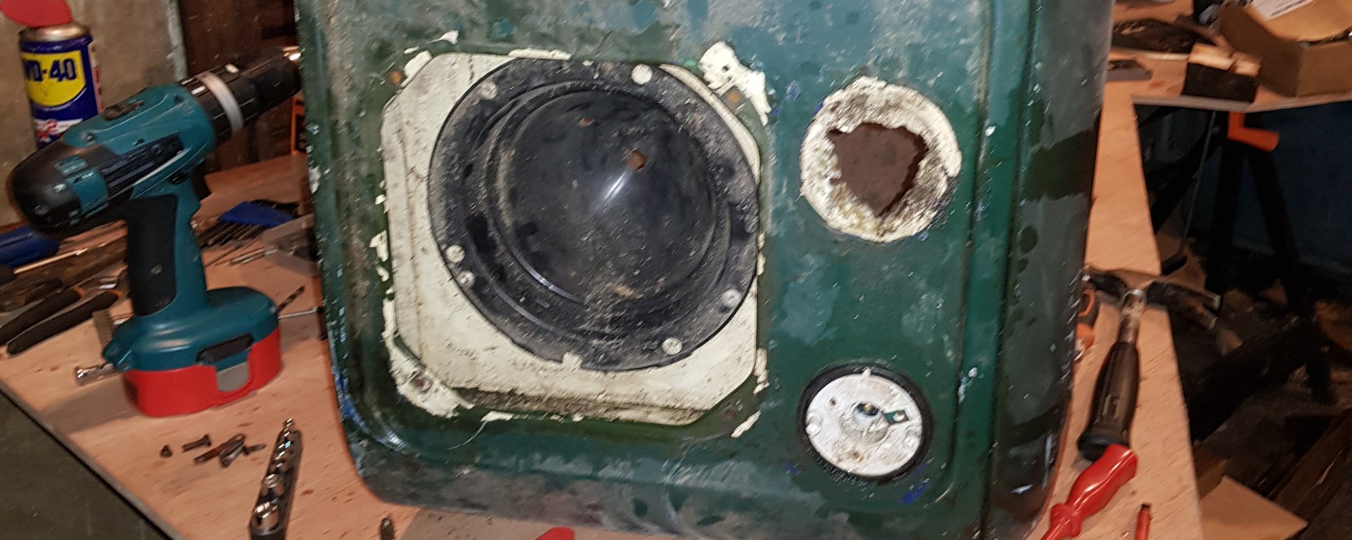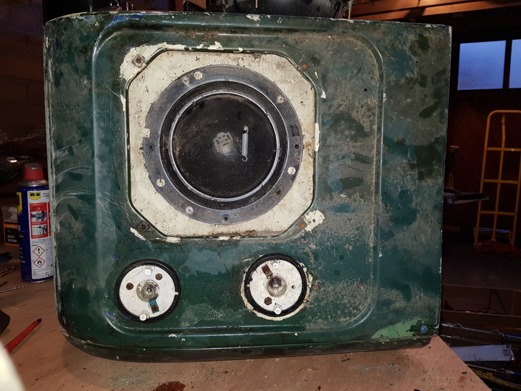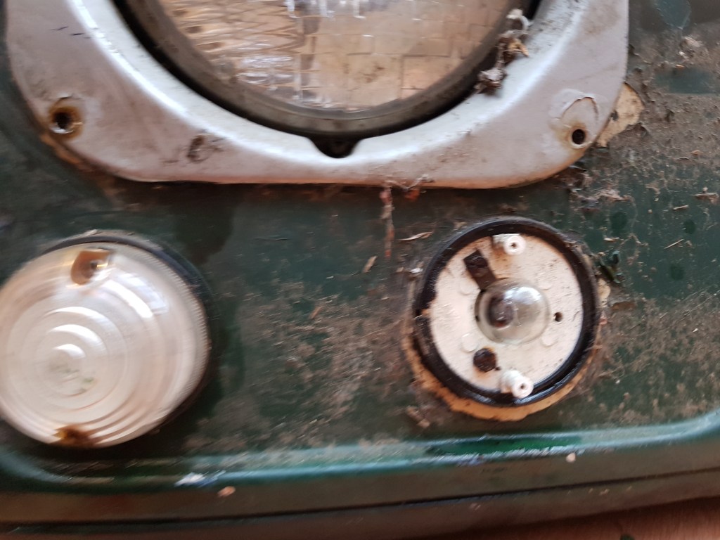 The replacement wings came with the lights and indicators in, which needed removing for paint. Removal showed a bit of corrosion behind the indicators but nothing substantial.